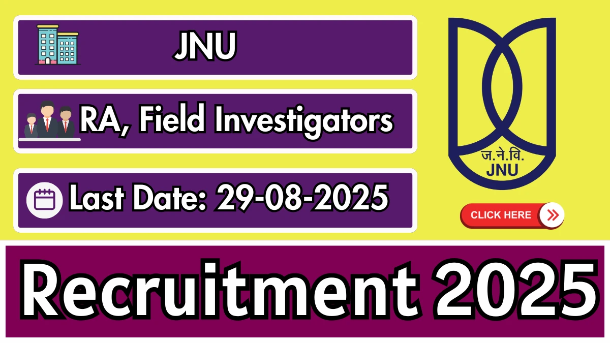 - Exam Name: JNU Research Assistant, Field Investigators Recruitment 2025